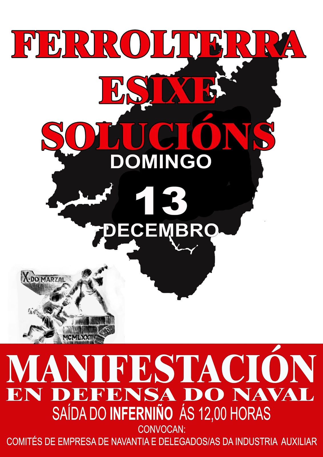 O Comité de Empresa fai un chamamento a tod@s os traballador@s á PARTICIPACIÓN na MANIFESTACIÓN, convocada polos Comités de Empresa de Navantia e Delegad@s da Industria Auxiliar, o DOMINGO día13 en Defensa Do Naval.