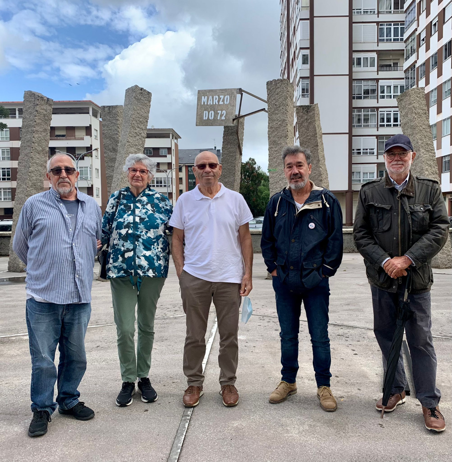 Onte, directivos da A.C. Fuco Buxán (Susana Alaniz, Viíctor Novás e Rafael Pillado) e da A.C. Memoria Histórica Democrática (Fernando Ocampo) co o autor Xurxo Lobato, asistindo á montaxe da Exposición "Rostros da Memoria Ferrol 1972" na praza Dez de Marzo de San Valentín Fene, onde permanecerá ata o día 30 de Agosto.